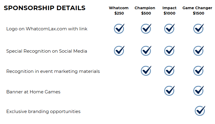 Join us in growing the game of girls lacrosse in Whatcom County! Whatcom Girls Youth Lacrosse is dedicated to fostering teamwork, confidence, and athletic skills for young athletes in our community. As a sponsor, you will help provide essential equipment, field rentals, and scholarships, making lacrosse accessible for all.